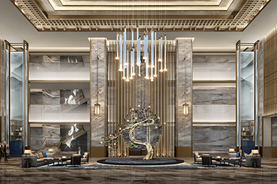 中餐廳入口處的重復(fù)金屬斗拱設(shè)計(jì),帶來中式迎賓的尊貴儀式感,端景墻的實(shí)木陰刻風(fēng)景畫,延展視覺空間,意境悠遠(yuǎn)。中餐大廳裝飾臺(tái)的茶具、枯枝花藝,構(gòu)造古樸靜雅的中式意韻,包房中形如鳳冠的藝術(shù)水晶燈,為典雅增添一抹高貴。